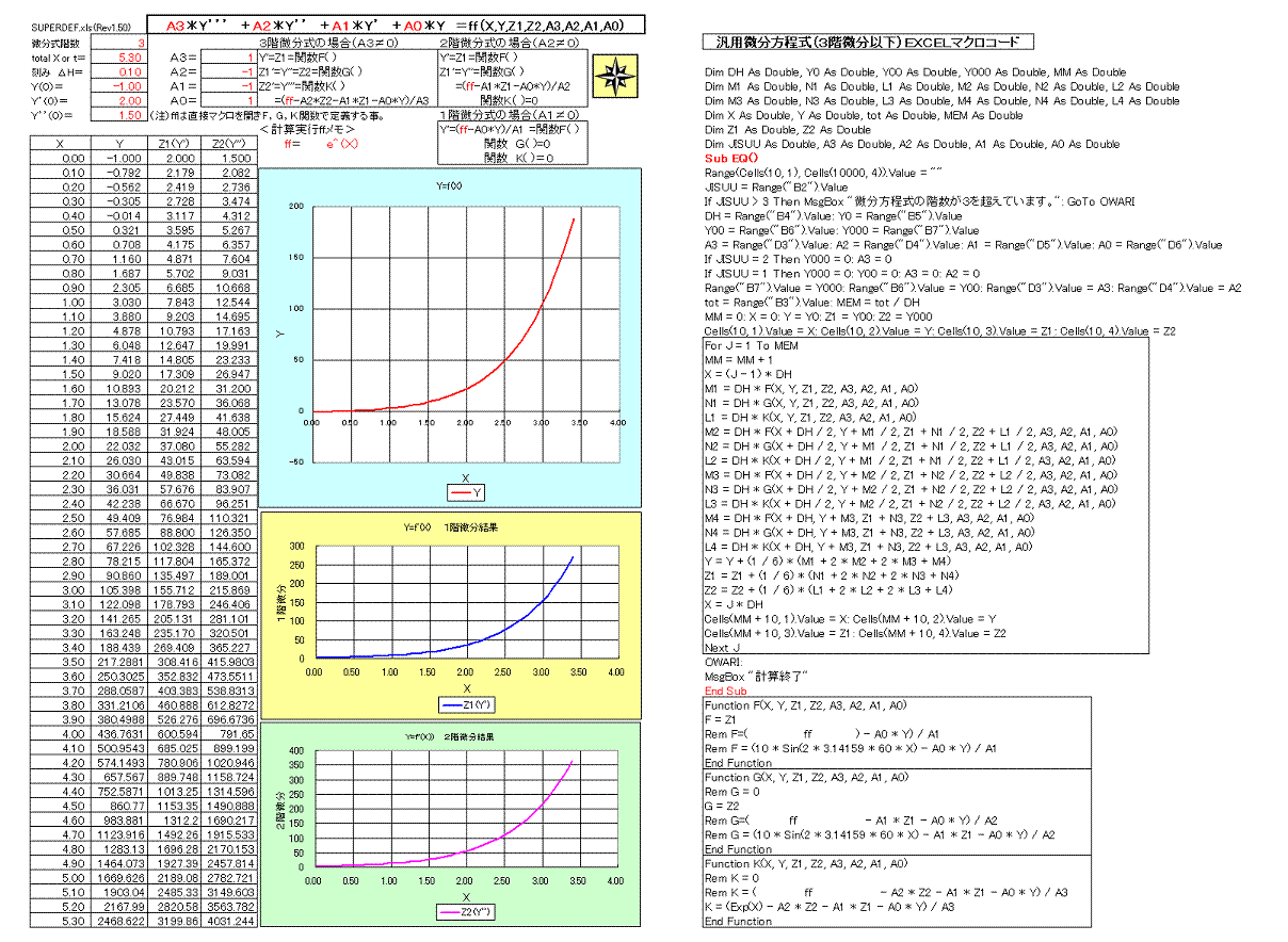 汎用微分方程式EXCELマクロコー