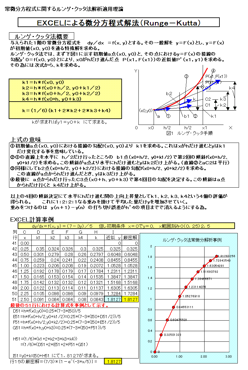 常微分方程式解法ルンゲ・クッタ法EXCEL表計算実施事例