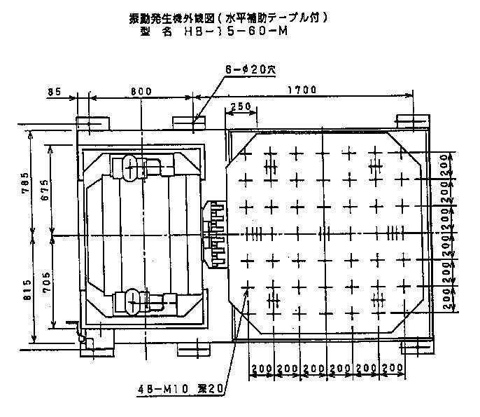 水平振動テーブル詳細寸法図
